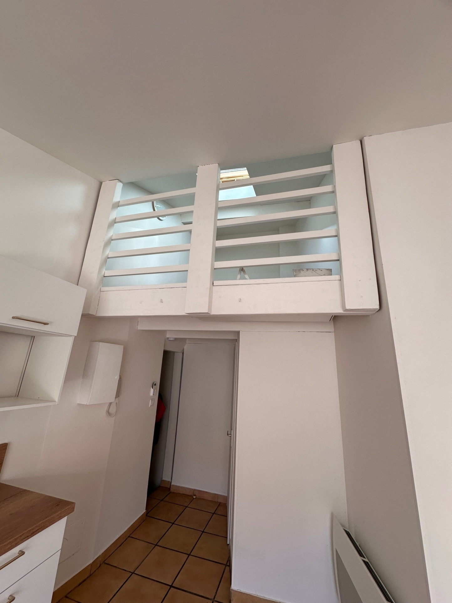 Il se compose d'une entrée, d'une cuisine aménagée et équipée ouverte sur un salon/séjour, une petite mezzanine au dessus, un WC, une salle d'eau et deux chambres,