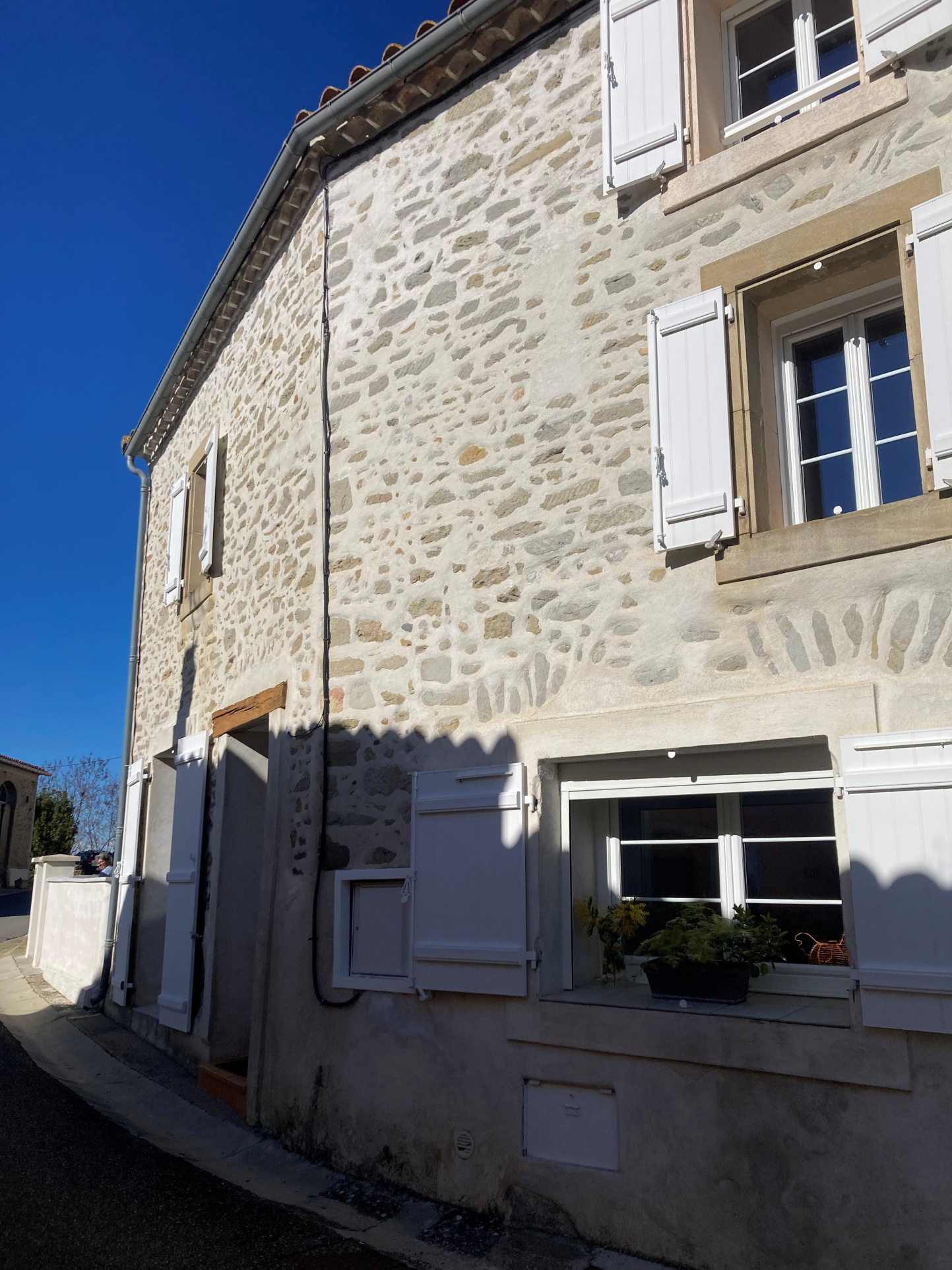 Trés jolie maison en pierre rénovée avec qualité comprenant 3/4 chambres, cuisine équipée, séjour avec poèle à granulés donnant sur terrasse, et jardinet.