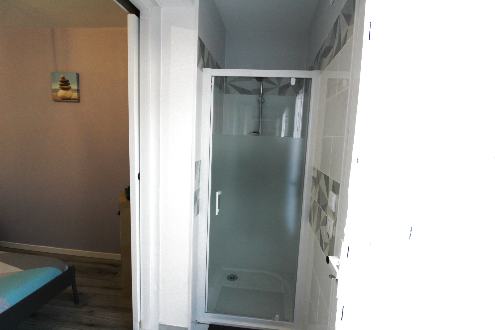 Au rez-de-chaussée, elle offre un lumineux salon-séjour, une cuisine séparée moderne et équipée, un WC ainsi qu’une suite parentale comprenant une chambre et une salle d’eau.